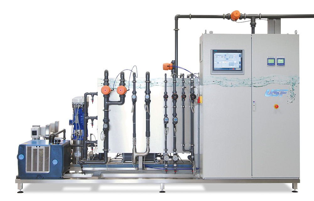 Die Reinstwasseranlagen von USF bereiten durch eine Kombination von Umkehrosmose und kontinuierlicher Elektro-Deionisation (EDI/CEDI) von 30 l/h Wasser bis zu mehreren hundert Kubikmetern pro Stunde auf.
